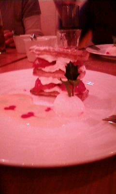 で、イタリアンでディナーに変更。これはこれで、美味でした。写真はデザートのミルフィーユが、Xmas仕様で可愛かったので、パチリ!