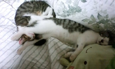 何なんでしょう?この体制??? シミレのヘリカル~に見えないこともない・・・・。なんて妄想が (=^_^;=) これはもう末期症状??それにしてもルルよ。ララの首を折る気かい?やめてくれよ。しかし・・・ぷぷぷっ!笑いが止まらん^^平和ですねえ。