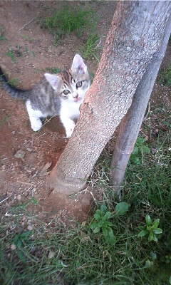 そんな中、やっぱり元気なのは子猫たちvvv文太さんのいない寂しさはどこへやら。ララとルルは、庭中をバトルしつつ駆け回っています。高い柿木の上まで一気登り!成長したんだなあ。
