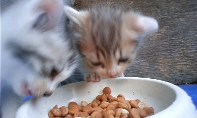 ララ(女の子・・ちっさい)なんか、まるで、「おいしいよ!これ、おいしいよ~!!こんなの食べたの初めてだよ♪♪」と、言ってるかのように、フニャニャニャニャア~~~♪♪♪と鳴きながら食べるのです。