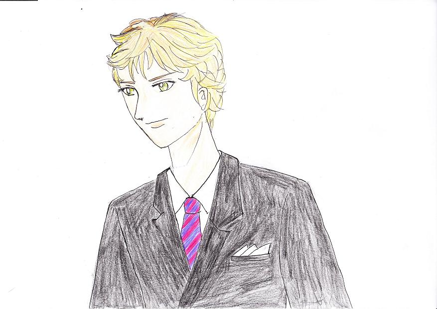 で、発表会(演奏会じゃないトコがツボ^▽^)に出演したって想定のラクガキ。一応演奏中♪利央君やっとこさ暗譜して弾いてます^^曲はそうだなあ、発表会定番、モ-ツァルトの♪トルコ行進曲なんぞはいかがかな?にしても、くりくりヘアーはやっぱりムズカシイ (^_^;) ちょっと散髪し過ぎた^^。服もなあ・・・。色塗りは色鉛筆で。ペンタブで、きれいに塗れないんだもん。やっぱ、無用の長物か。