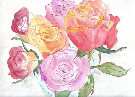 今日の絵は、スケッチサークルで一人2枚というノルマで描いた薔薇です。
