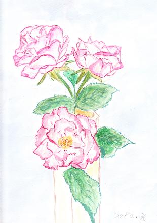 イラストは、庭に咲いてた薔薇です。なんか、椿みたいだけど、薔薇です~(笑)